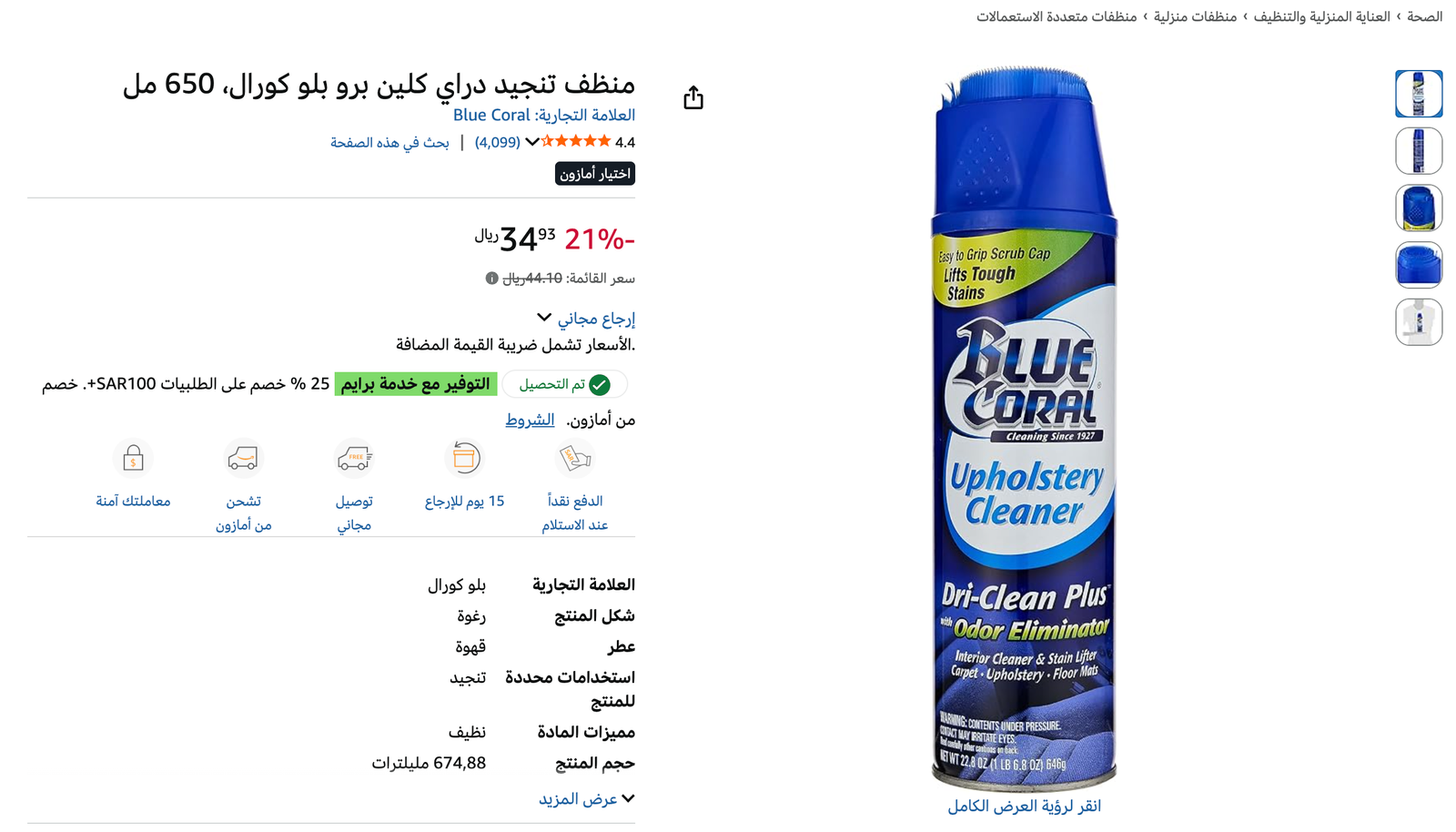 مراجعة منظّف تنجيد دراي كلين برو بلو كورال 650 مل – Blue Coral Upholstery Cleaner